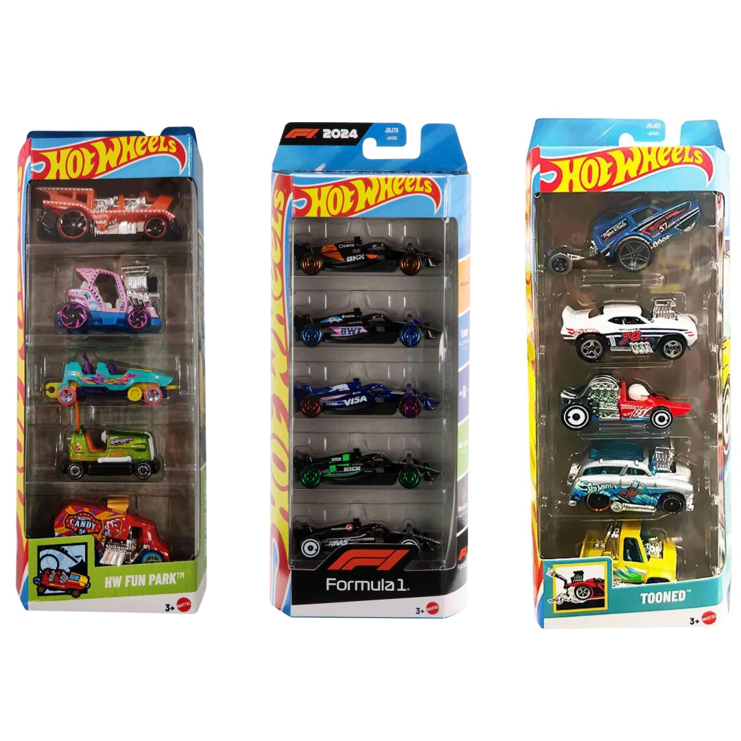 Race into the pole position of legendary Hot Wheels collections with a 5-pack of 1:64 scale Formula 1 race cars. Each die-cast vehicle has the fun details that kids and collectors will recognize from the worlds most popular motorsport series. Create unforgettable stories with cars representing 5 notable Formula 1 racing teams, including Visa Cash App RB Formula One Team, KICK Sauber F1 Team and MoneyGram Haas F1 Team. Turbo charge any collection with Hot Wheels cars from veteran teams like McLaren F1 Team and newer names on the grid like BWT Alpine F1 Team.