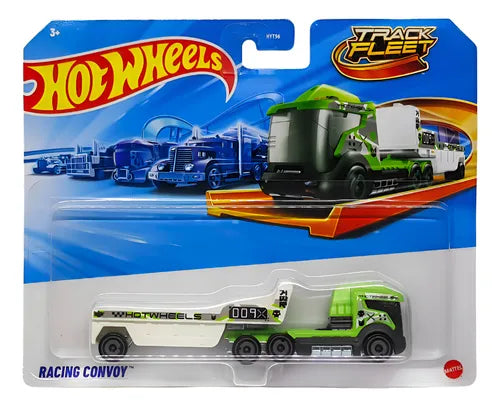 The Hot Wheels Track Fleet are ready to race! Designed to work on Hot Wheels tracks (sold separately), each die-cast vehicle is 1:64 scale and comprised of a cab and trailer with sweet decos and loads of graphics. Different mixes are released throughout the year for the freshest selections. Kids and collectors will want them all to build the ultimate, custom fleet. Each sold separately, subject to availability. Styles, colors and decorations may vary.