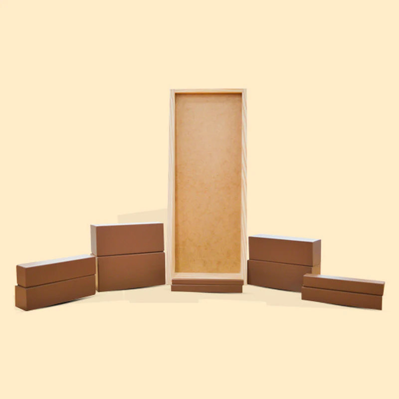 The eco-friendly wooden Brown Steps set is crafted from high-quality solid wood, featuring various sizes from small to large. Handcrafted wooden blocks like these are perfect for open-ended play, designed with care to ensure safety for your children. Each block is carefully sanded to perfection and finished with non-toxic, soft pastel colors, offering a natural and timeless feel. These Montessori-inspired wooden toys stimulate creativity and imagination, encouraging children to build towers, intricate designs, and entire imaginative worlds.