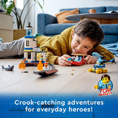 This premium, multi-model Seaside Police and Fire Mission (60308) toy play set puts kids at the heart of the action with realistic vehicles and inspiring characters that stimulate imaginative play.Crook-catching adventures for everyday heroes. 2-in-1 police & fire action play set. Floating fire dinghy with water-element shooter.Feature-rich, multi-model,action-packed play set. Easy digital building guide for kids aged 5 and up.
