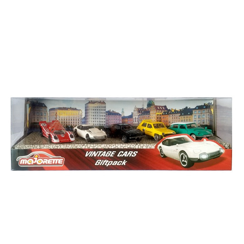 The Majorette vintage cars gift pack shows the milestones in the history of the motor car. Both large and small collectors will be delighted with this gift: the Majorette vintage cars gift pack consists of five high quality freewheel toy cars modelled on the best vintage cars in motoring history. The models of ford, Porsche, Renault and vw cars have some moving parts which afford a view of the interiors