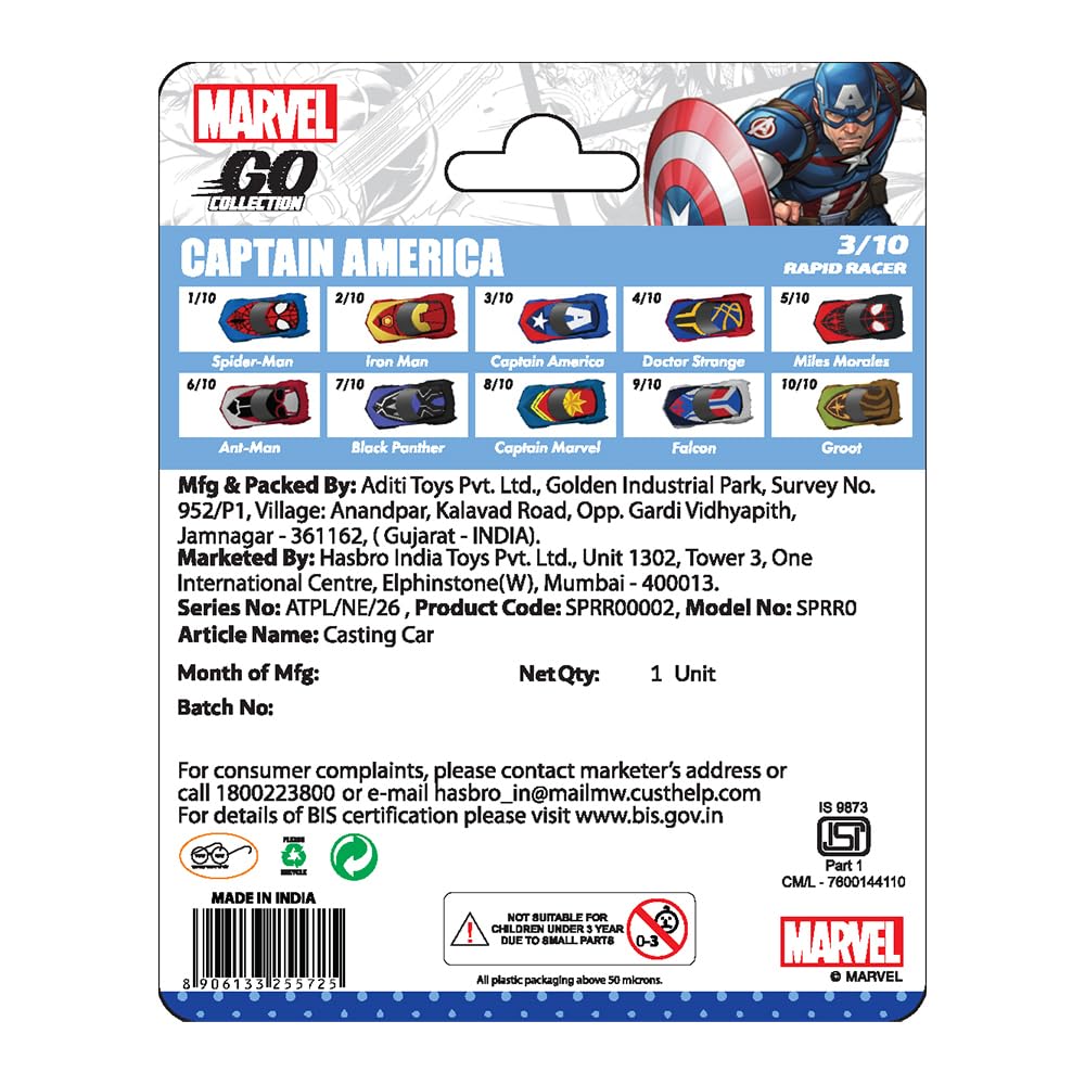 The Marvel Go Collection Rapid Racer series features all the glory of your favourite Super Hero costumes, on a slick set of wheels. Designed like your favourite Marvel characters, from Marvel's Spider-Man, Iron Man to Groot and more! Engineered for non-stop fun! Take the wheel of our new #MarvelGoCollection, collect them all!