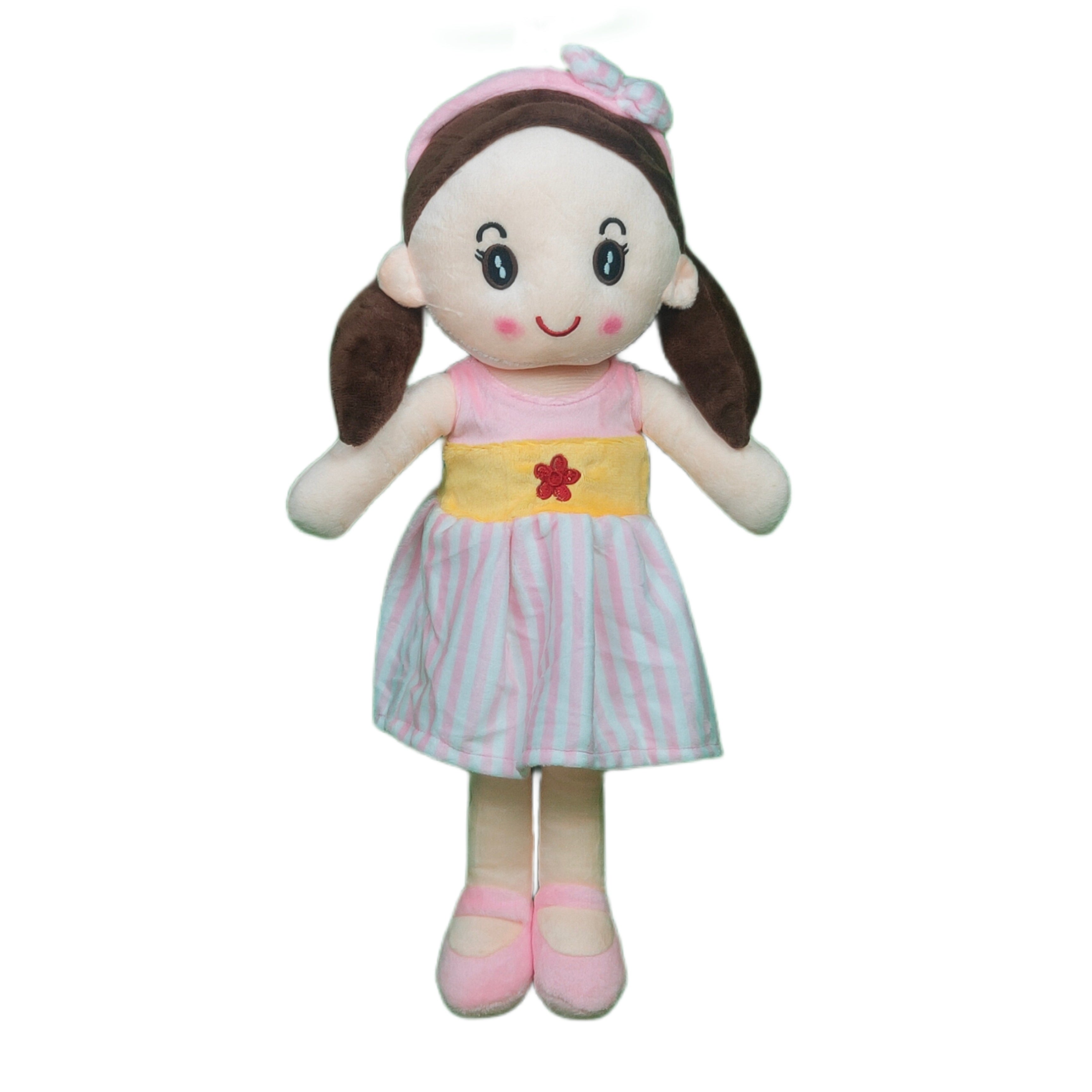 Play Hour Cute Rag Doll Plush Soft Toy Wearing Baby Pink & White Stripes Frock for Ages 3 Years and Up, 40cm