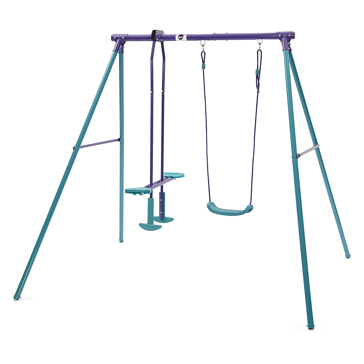 The PlumHelio Swing and Glider Set is a perfect for inspiring outdoor fun all year round!Children and their friends can have hours of energetic play as they share the glider and swing. The swing set has been made from steel, which has been powder coated, to give long lasting protection against rust. The swing set uses soft feel ropes and heavy duty injection moulded seats for extra durability. The garden swing set has cross braces for extra stability and adjustable height swing seats. Parents can have peace of mind their children are riding a quality swing set, with safety standards at the centre of its design.