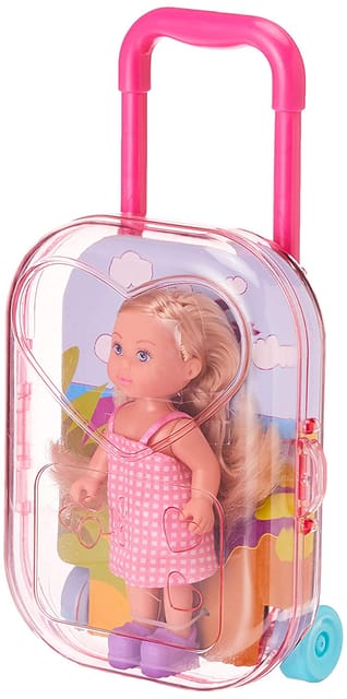 The cute Evi wears a summery outfit and is stowed in a trolley together with shoes, brush and comb. So you can take his Evi everywhere with you. The set by Simba Toys is suitable for children from 3 years old.
