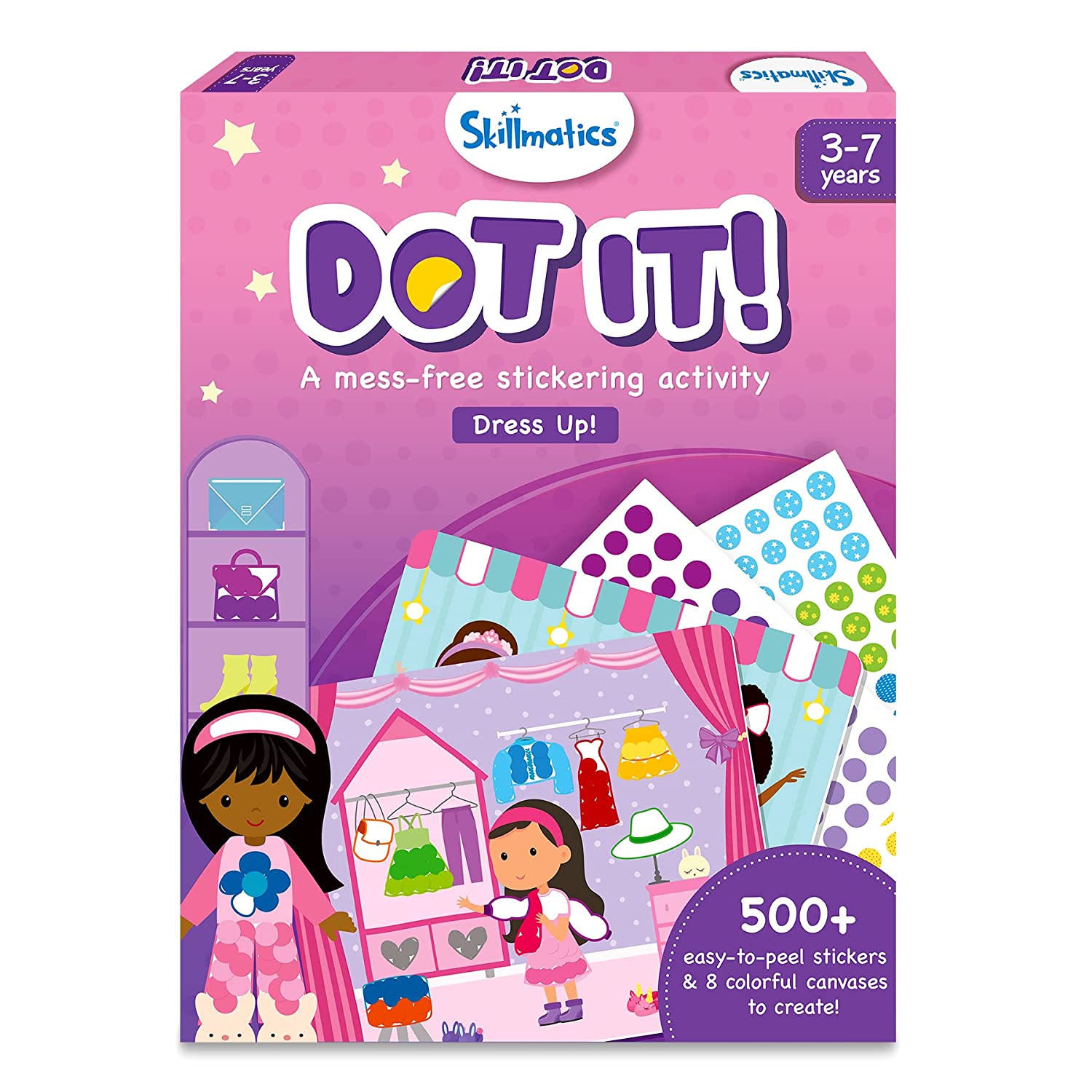 Dot it! is the perfect stickering, no-mess art activity to keep your child engaged at home or on the go! With over 500 stickers, your child is encouraged to use their fine motor skills and imagination to complete 8 themed pictures featuring Unicorn & Princess