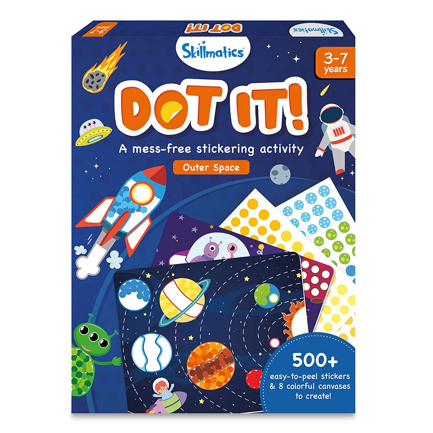 With over 500 easy-to-peel stickers, your child will to use their fine motor skills and imagination to complete 8 space-themed pictures featuring planets, spaceships, asteroids and more!