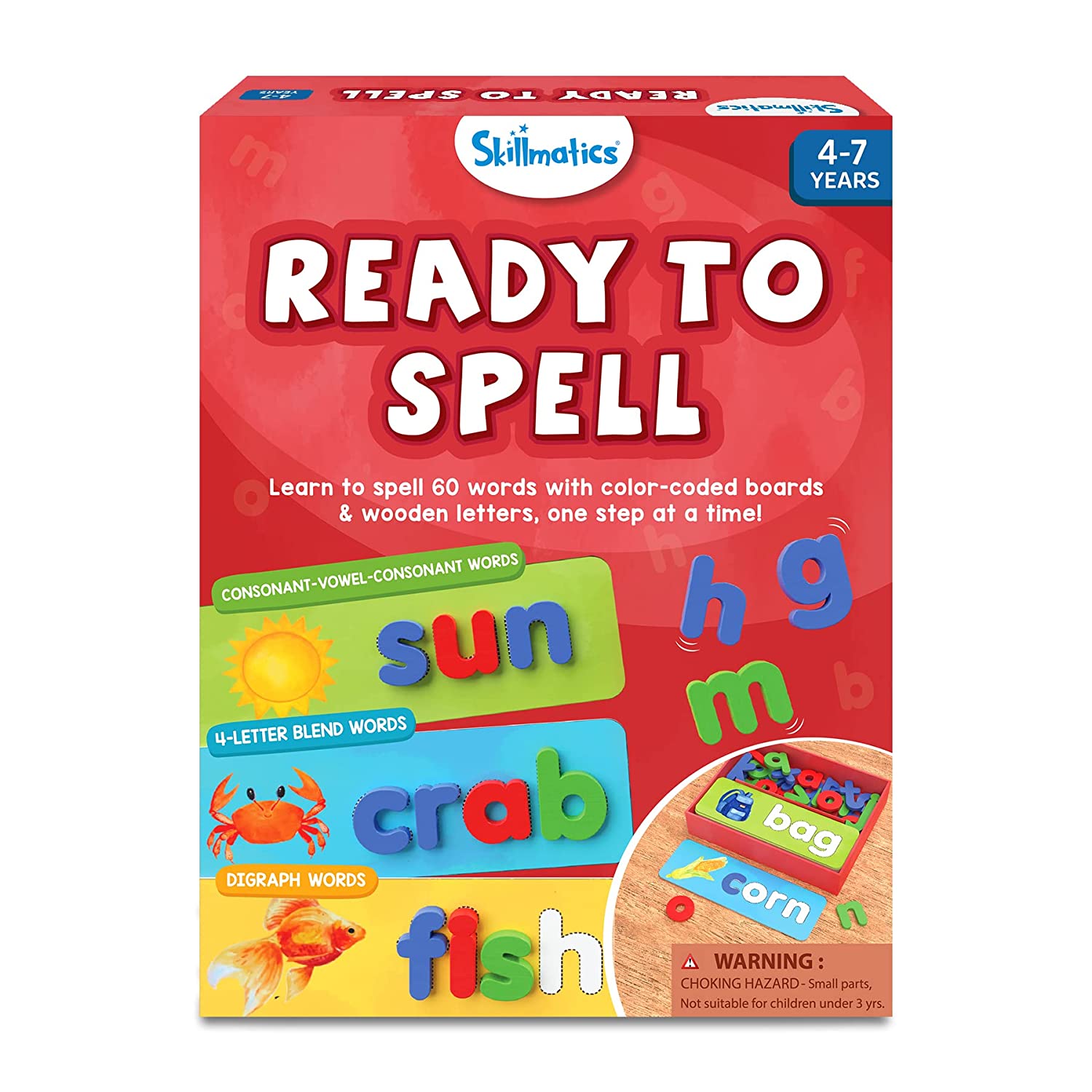 Ready to Spell helps your child learn to spell, one step at a time! With colour-coded boards, your child will progressively learn to spell Consonant-Vowel-Consonant Words, 4-Letter Blend Words, and Digraph Words. HOW TO PLAY - Begin with using the green boards which are Consonant-Vowel-Consonant Words, then move on to the blue boards which are 4-Letter Blend Words, finally move on to the yellow boards which are Digraph Words. The difficulty increases as the child works through the levels! TEACHES - Letter-Sound Recognition, Reading Fluency, Spelling Consonant-Vowel-Consonant Words, Blend Words & Digraph Words. KEY SKILLS - This learning tool develops reading, spelling, and fine-motor skills in kids! Multiple kids can enjoy this toy at once!