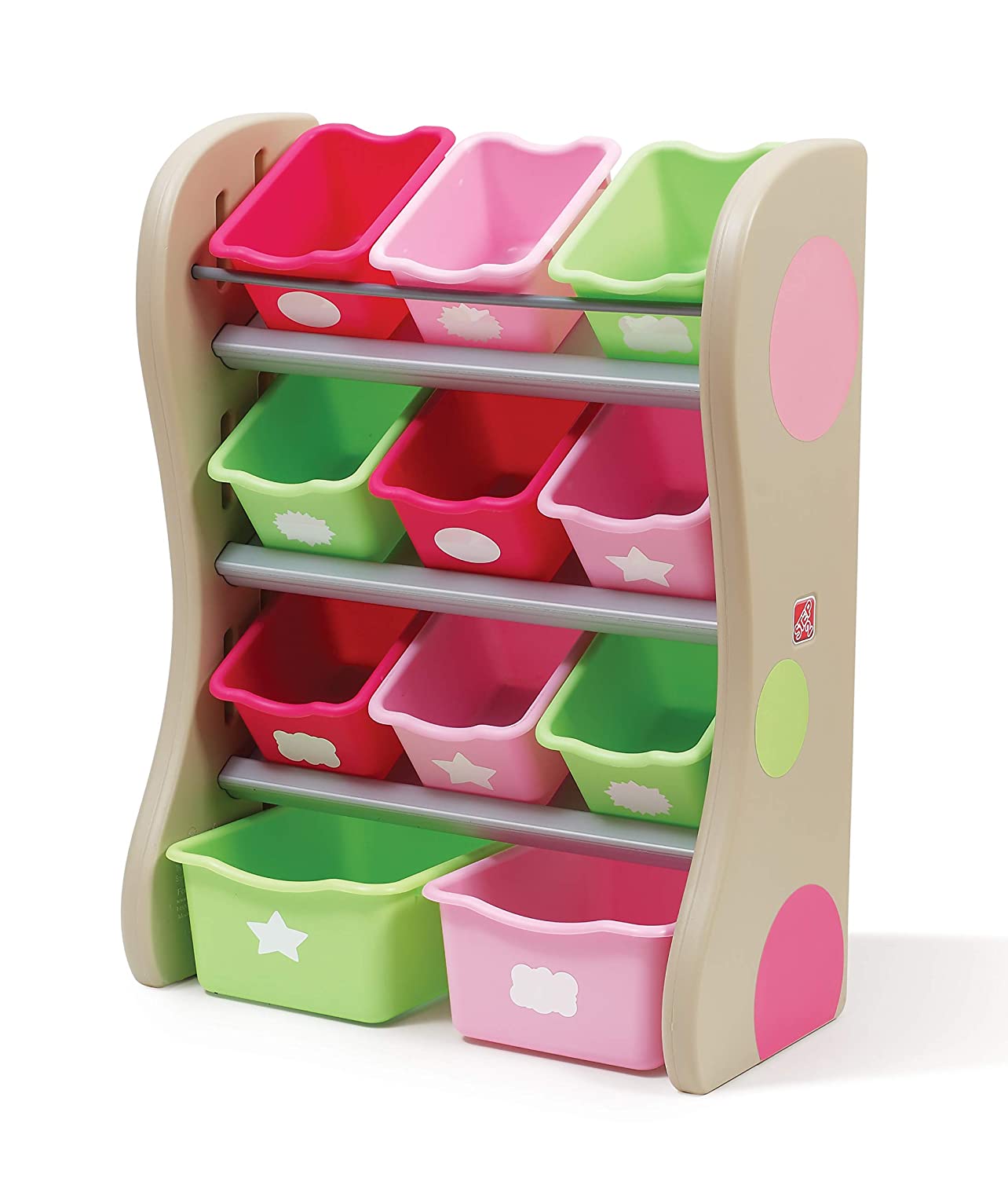 This Step2 Room Organizer is a creative storage center for toys, books and children's accessories. It's perfect for a playroom, bedroom or daycare. The 11 bins will keep toys and other items organized and your little one's room looking spotless. Parents will love the fresh colors and design, which are playful and exciting to kiddos. Made in USA