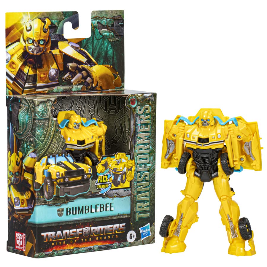 Bumblebee, the courageous Autobot scout, converts between modes with the power of Energon! Flex Changers figures are based on characters from the new Transformers movie, Transformers: Rise of the Beasts! Figures convert from robot to alt mode and back by flexing the toy. (Each sold separately, subject to availability.) The battle on Earth is no longer between the heroic Autobots and the evil Decepticons. Transformers: Rise of the Beasts introduces mysterious factions, the Maximals, the Predacons, and the Terrorcons, in an epic 90s globetrotting adventure.